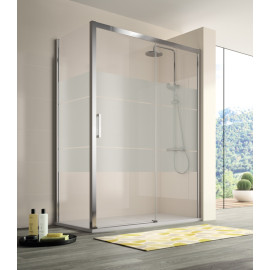 Mampara angular ducha 300, frontal de ducha de 1 fijo + 1 corredera, TR102 + lateral fijo TR103 decorado Bali con antical Easy Clean.