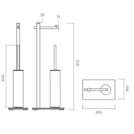 El conjunto de pie Medimex Practic redefine la organización del baño combinando un portarrollos y un escobillero en una estructura única de diseño minimalista. Al ser un accesorio de pie, ofrece la máxima versatilidad, permitiendo ubicarlo en cualquier lugar del baño sin realizar instalaciones fijas ni dañar los revestimientos. Está fabricado en acero de alta resistencia para asegurar una vida útil prolongada y resistencia a la corrosión.