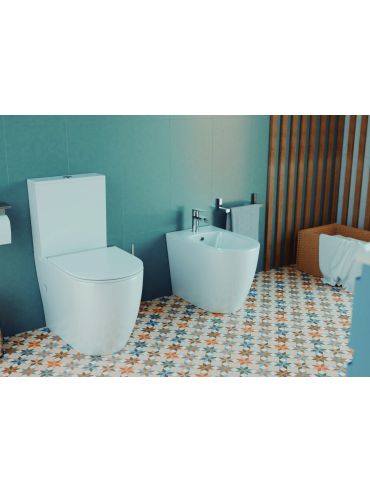 Completa tu baño con el bidé Mod. Elba de Fossil Natura, diseñado para combinar perfectamente con el inodoro de la misma serie. Su estilo adosado a pared ofrece una estética moderna y limpia, ideal para espacios contemporáneos.