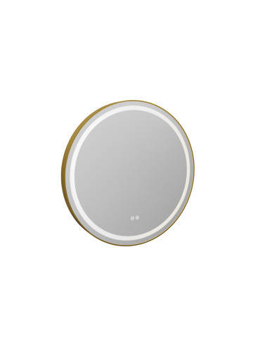 Espejo circular con luz frontal LED, tres temperaturas, intensidad regulable, función antivaho y marco metálico dorado. Un diseño elegante y moderno para baños con estilo.