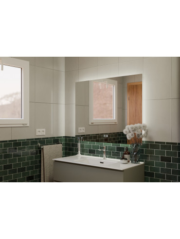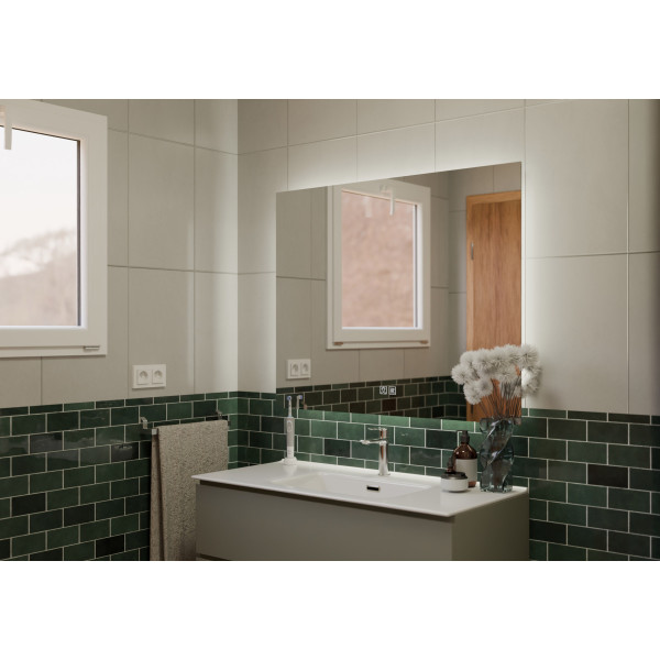 Espejo rectangular con luz LED regulable, sistema anti-vaho y encendido táctil. Ideal para baños modernos. Dimensiones: 100x80 cm. Luminosidad: 3680 lm.