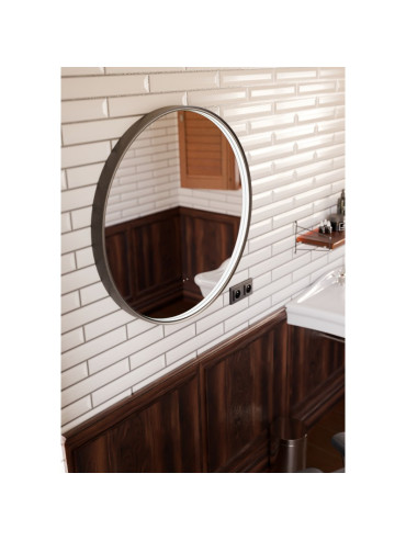 Espejo redondo Paolo con luz integrada en marco metálico. Disponible en 60 cm y 80 cm de diámetro. Cuenta con sistema de encendido secuencial, antiniebla incorporado y sensor de movimiento. Marco de resina lacada, luz regulable para mayor comodidad. Ideal para baños, vestidores o dormitorios modernos.