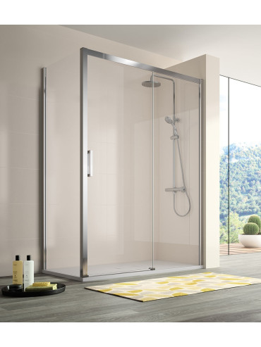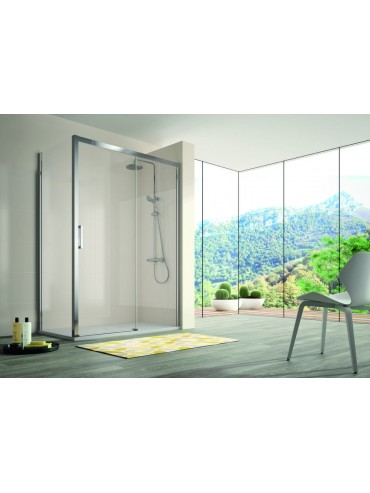 Tipo de mampara: Frente de ducha (panel fijo + puerta corredera)