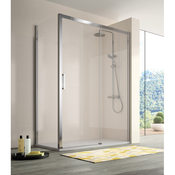 El cristal transparente templado de 6 mm proporciona resistencia y seguridad, a la vez que maximiza la entrada de luz y crea una sensación de amplitud. El acabado en plata brillo en los perfiles aporta un toque contemporáneo y de calidad superior, combinando perfectamente con todo tipo de estilos de baño.